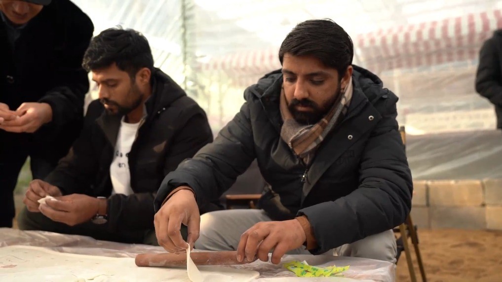 擀皮、调馅、捏饺子,体验年味儿中国,从包饺子开始。案板上,雪白的面团在大家手中化为一张张饺子皮。调馅区,鲜香四溢的馅料,凝聚着家的味道。